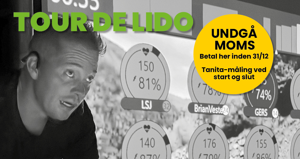 Tour de Lido – et bikeforløb med Kim fra 10/1 Alle kan deltage – du behøver ikke være medlem!Så ruller vores populære TDL igen fra start Opstart: lørdag d. 10. januarSlutDato: torsdag d. 5. februar Skal du med fra start, når det seje Tour de Lido-felt ruller til januar, så skal du melde dig til nu. Denne Tour består af 9 etaper, som køres i to runder, så du virkelig kan få målt din præstation. Der vil være en kongeetape på over 2 timer, hvor du kan få testet dine bjergben, samt en Tanitamåling før første og sidste etape. Når forløbet er færdigt, får du en oversigt over dine data, så du kan sammenligne og forhåbentlig se en udvikling over forløbet. Træning: 1. Lørdag d. 10/1, 10:30 – 12:00(Tanitamåling fra 09:45) 2. Mandag d. 12/1, 18:10-19:00 3. Onsdag d. 14/1, 17:00-18:30 4. Onsdag d. 21/1, 17:00-18:30 5. Lørdag d. 24/1, 10:30-12:00 6. Mandag d. 26/1, 18:10-19:00 7. Onsdag d. 28/1, 17:00-18:30 8. Onsdag d. 04/2, 17:00-18:30 9. Torsdag d. 05/2, Kongeetape 17:00-19:30 (Tanitamåling fra 16:15) PRIS PR. deltager:kr. 935,- (m. eget pulsur)kr. 1.235,- for ikke-medlemmerTilkøb af Iqniter pulsur +499,- INKL: Tanita-måling ved start og slut Dette vi måler på: Kalorier Distance % watt Gennemsnitswatt Watt pr. kg Meld dig til og vær med til en fantastisk udfordring, der får dig helt op i gear! OPSTART 10/1 – AFSLUTNING 5/2Sidste tilmelding: 31/12-2025 – og så sparer du momsen Derefter stiger prisen med 25% Du er sikret din plads ved betaling her Det fulde beløb betales, også hvis man først kan deltage senere eller er forhindret på enkelte dage. Altså, der gives desværre ingen reduceret pris/rabat. Din tilmelding er bindende og der refunderes ikke deltagergebyr ved afbud eller udeblivelse, uanset årsag. Dog må du gerne give/sælge din plads til en ven. Tilmeld dig her